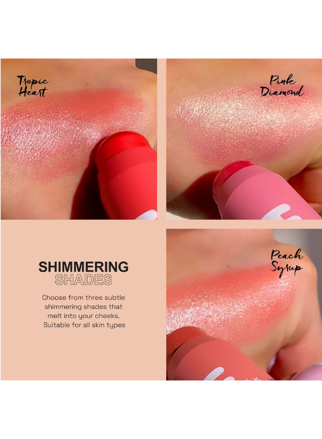 Choose from three subtle shimmering shades suitable for all skin types: Peach Syrup 🧡 Pink Diamond 🩷 & Tropic Heart ❤️