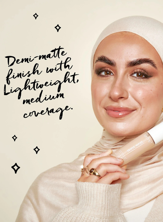 Triple Wave is a skincare-meets-makeup foundation designed to blend into the skin seamlessly and help cover uneven skin tone and blemishes.