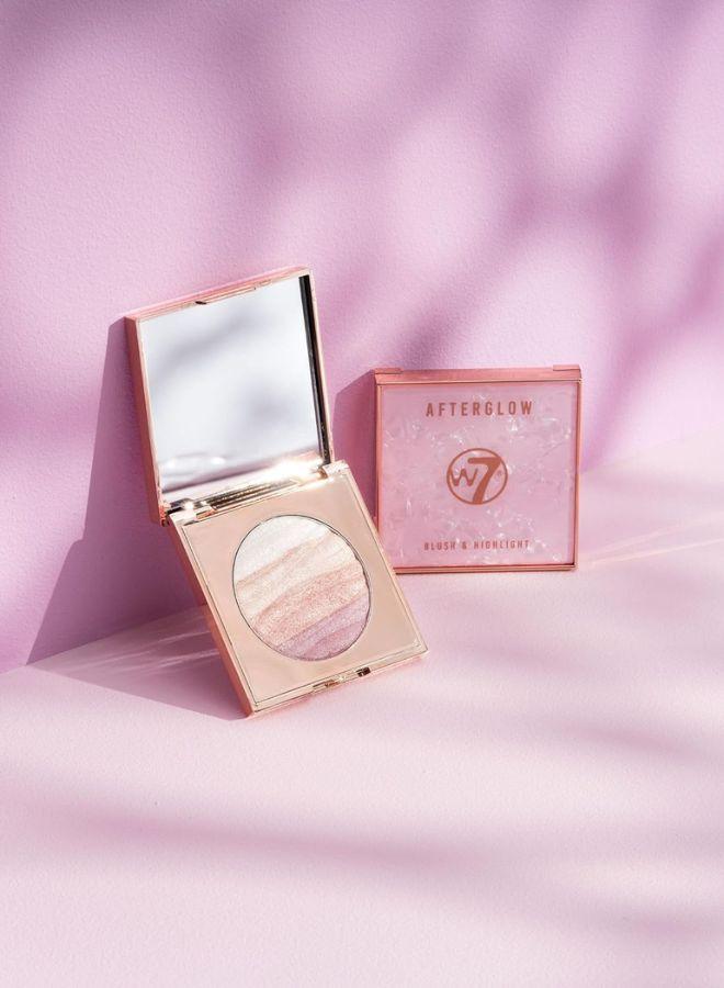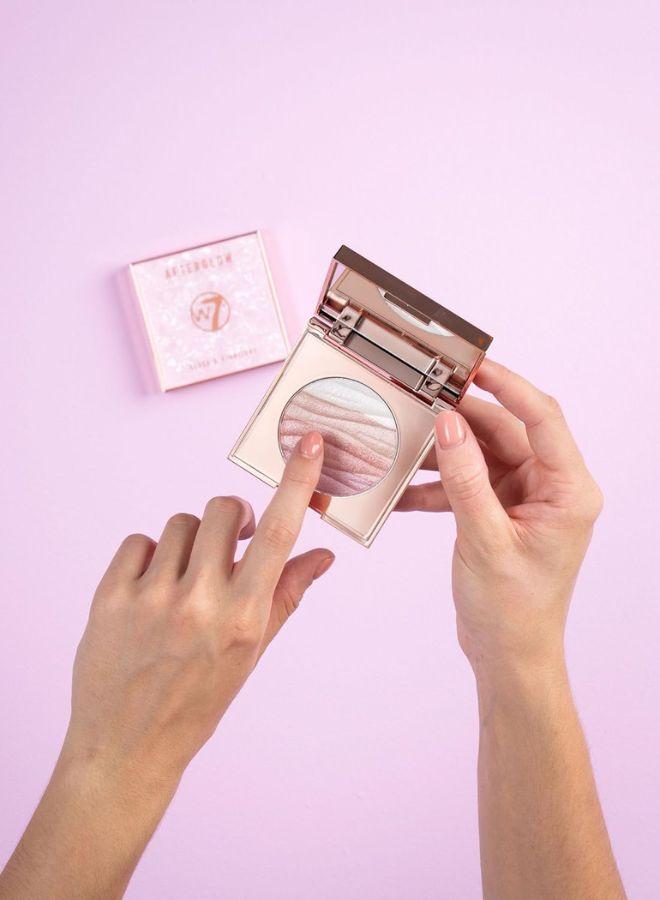 W7 Afterglow Blusher & Highlight Compact - Pink & Gold Glowing Pressed Powder Compact