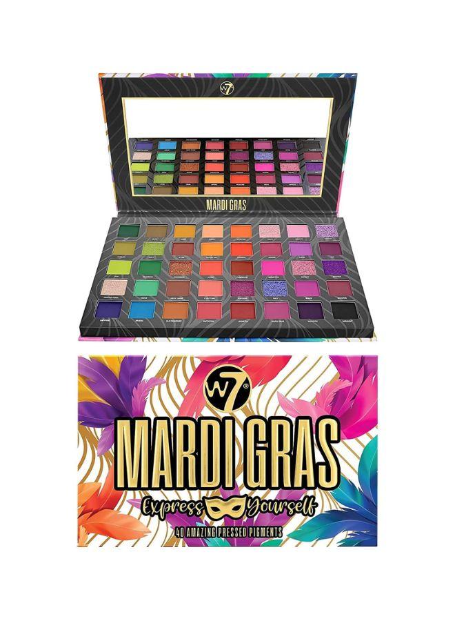 W7 Mardi Gras Pressed Pigment Palette - 40 High Impact Party Colours - Flawless Long-Lasting Bold Makeup